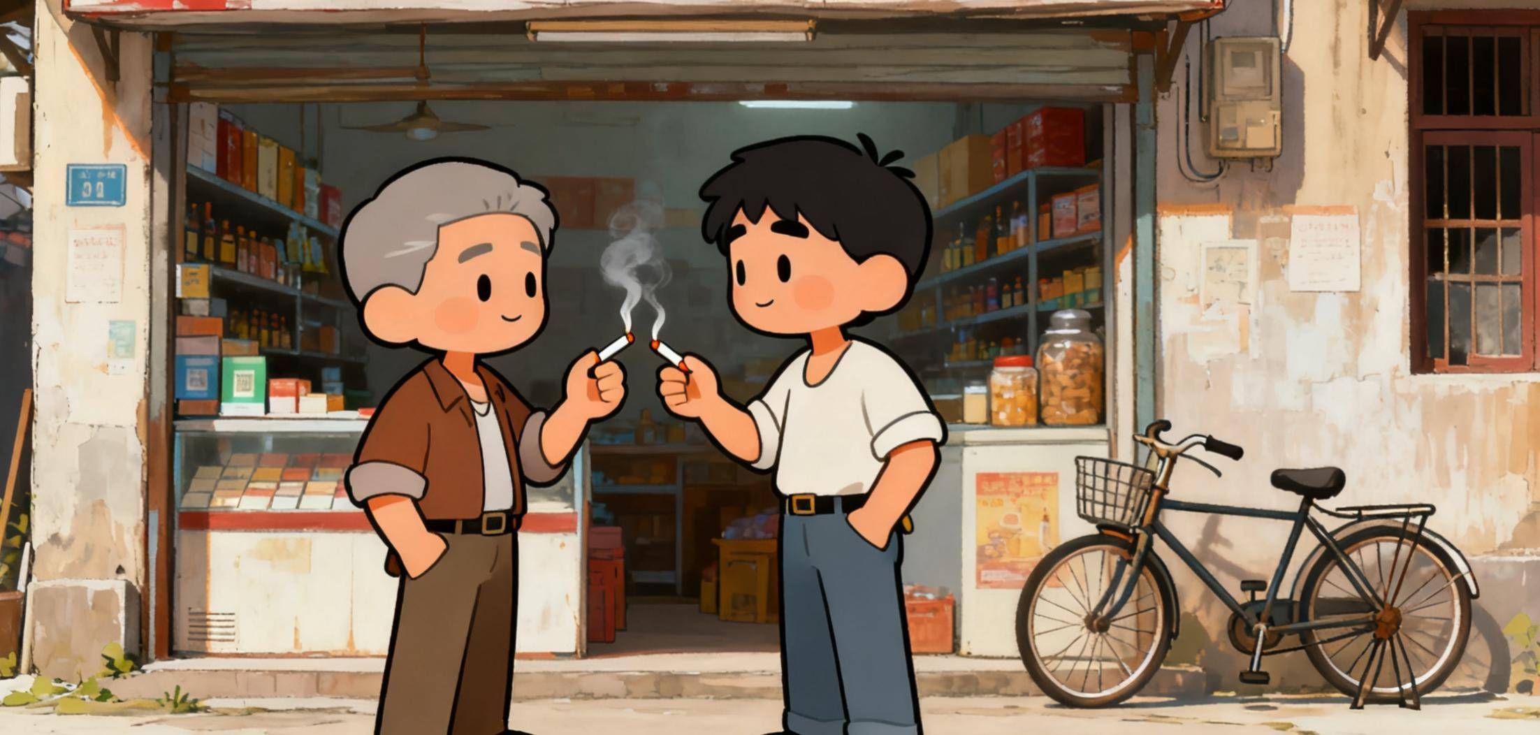 他从马师傅那里回来,没有直接回家,溜溜达达就到了巷口的小卖部,在那里买了包烟拿出来抽着,正好碰到了之前在一起混的张强。